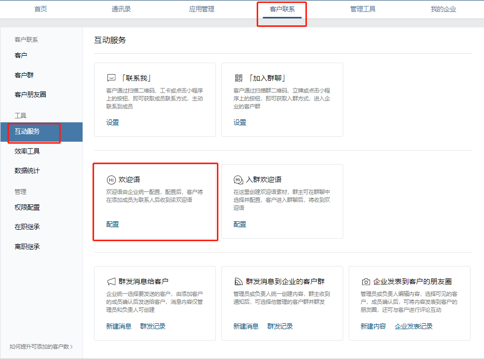 1、企业微信欢迎语怎么设置欢迎语是我们添加客户后发送的第一句话,可以确定客户对我们的第一印象。不同类型的欢迎语,有不同的效果,比如:① 介绍型欢迎语:这类欢迎语主要是介绍自己,告诉客户我们可以做什么,是最常见的欢迎语。比如说“你好呀,我是你的专属顾问,有关产品问题以及售后问题都可以问我哦~”② 引导型欢迎语:主要是引导客户入群、领取优惠券。比如说“终于等到你,我们为你准备了XX优惠,可以直接点击领取~”③ 活动型欢迎语:比如说客户是扫描活动海报添加的客户,这时就可以使用活动类型的欢迎语,“你好,欢迎你参与本次的XX...
