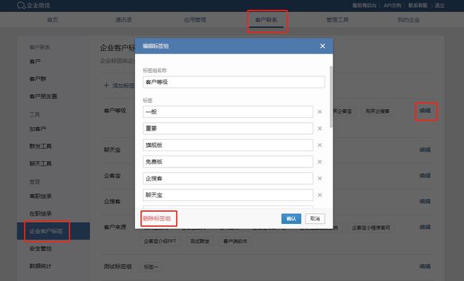 企业在使用企业微信运营客户时,会给客户添加相应的标签,既是给客户进行分类,也让员工加深了对客户的印象,换句话说,客户标签是员工跟进重点客户、挖掘潜在客户的好帮手。可是有时候企业为了更精细化地管理客户,给客户添加了过多的标签,企业标签和个人标签杂糅在一起,很难进行标签管理。那么当标签过多时,该怎么删除多余的标签呢?一、删除企业客户标签企业客户标签由企业管理员在后台统一设置,因此只能由管理员进行删除。在企业微信电脑端,企业管理员登录企业微信管理后台,在“客户联系-企业客户标签”页面,点击标签组右侧的“编辑”,再点击“删...
