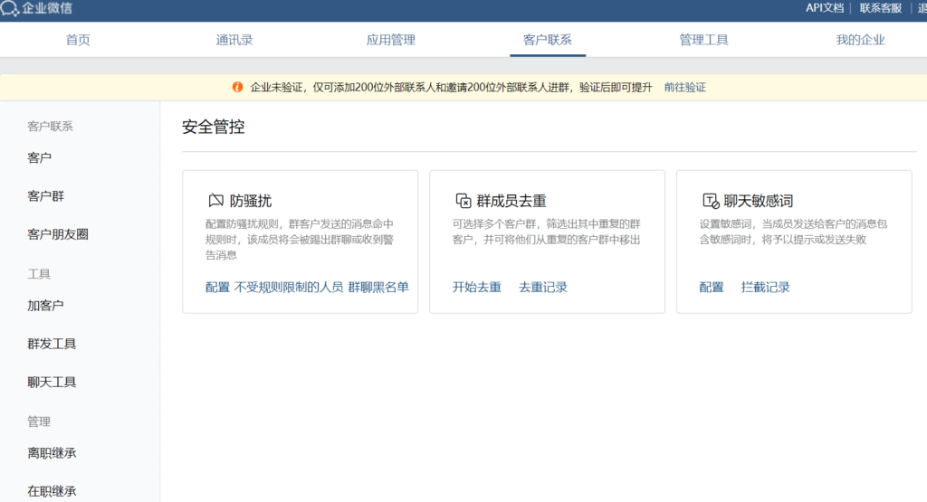 我们可以通过企业微信的管控小工具来实现禁止群内的竞品发送竞品广告、消息、小程序等,从而防止他们挖走我们的客户。管理员可以登录企业微信后台,在【客户联系】-【安全管控】中开启防骚扰功能,针对多种骚扰场景,提供多种选项,比如消息包含关键词就会被检测到然后踢出群聊。群内有发竞品广告或者宣传自己的小程序、还有发文件、视频、名片等操作的,都可以被设为监管的对象。【启微网络提示:可以设置白名单,把公司小程序加入白名单,防止不小心误伤。】扫描下方二维码,添加我们专业的企业微信顾问!企业微信授权服务商,客服电话:400660112...