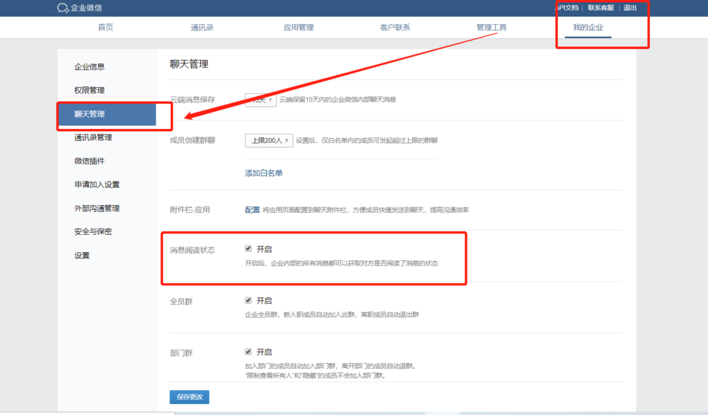 首先,我们可以一起来了解一下企业微信的已读机制。企业微信已读功能是由企业管理员自行设置开启或关闭的,仅在公司内部生效,员工无法操作,只能由管理员进行置。 如果企业管理员想要关闭已读功能,只需在企业微信管理后台中【我的企业】–【聊天管理】中进行设置,点击关闭【消息阅读状态】即可。消息阅读状态关闭后,公司内部之间聊天不会再显示消息是否已读。扫描下方二维码,添加我们专业的企业微信顾问!企业微信授权服务商,客服电话:4006601126。...