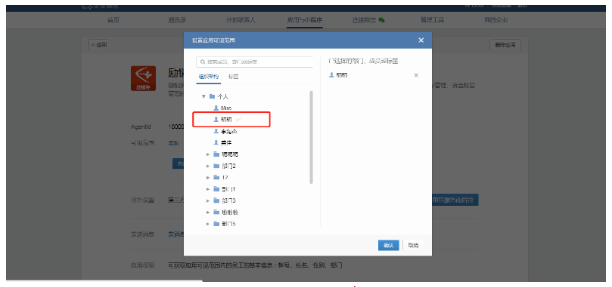 企业微信中设置了应用的可见范围,但该员工不在应用可见范围内