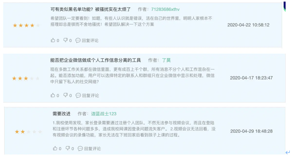 我从应用商店里找了几条有代表性的评论,发现了三个有代表性评论: