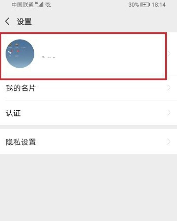 4、点击进入之后就可以看到你个人视频号的相关设置,有我的名片还有隐私设置等等,直接点击你头像的这栏按钮。